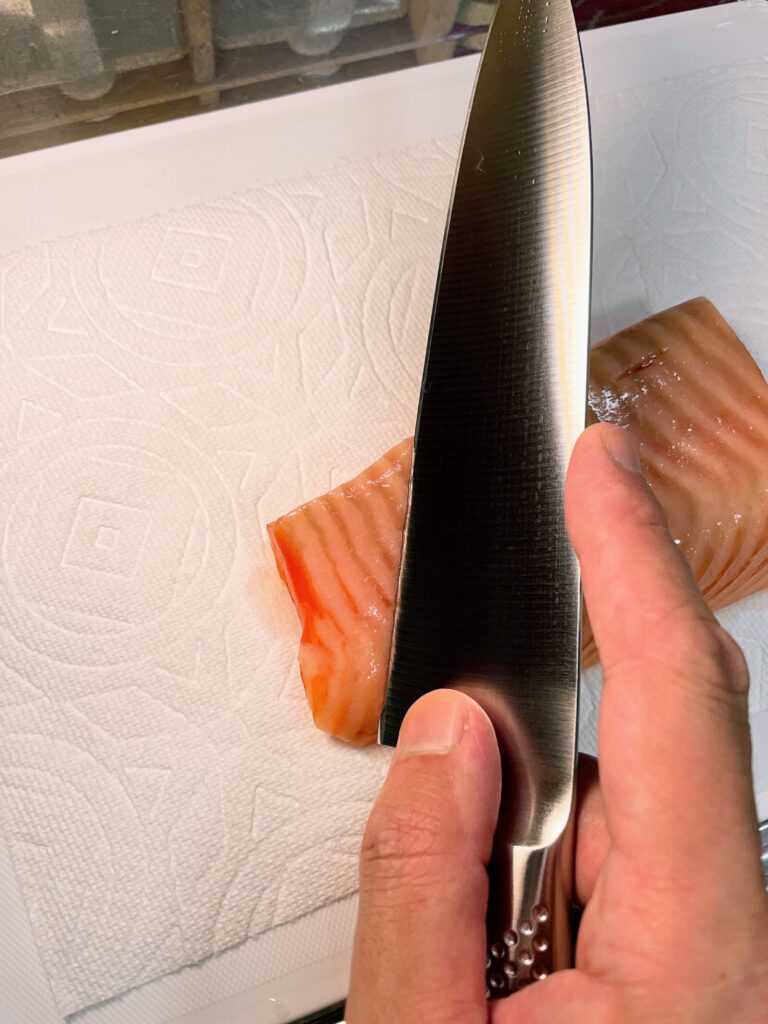 魚を扱う際、包丁の長さと切れ味はとても重要です。