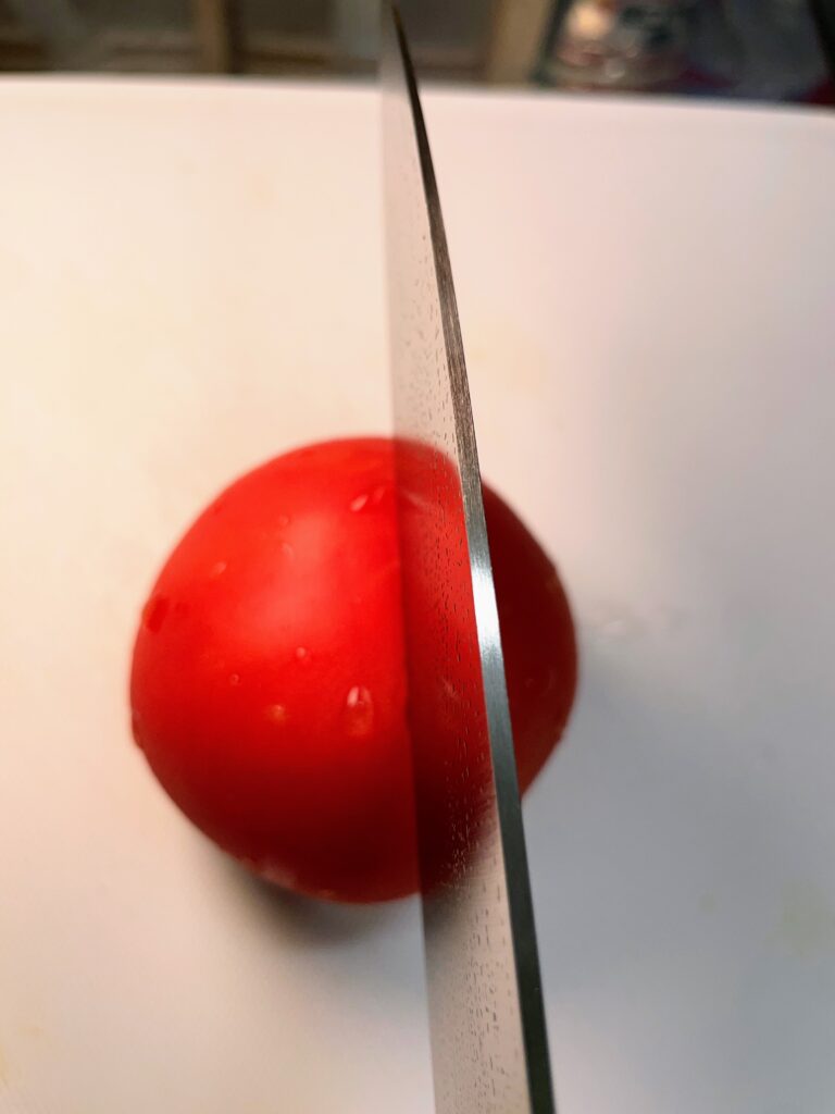 切れ味が悪い包丁では「押しつぶすように切る」感覚になりますが、この包丁ではストレスが全くありません。