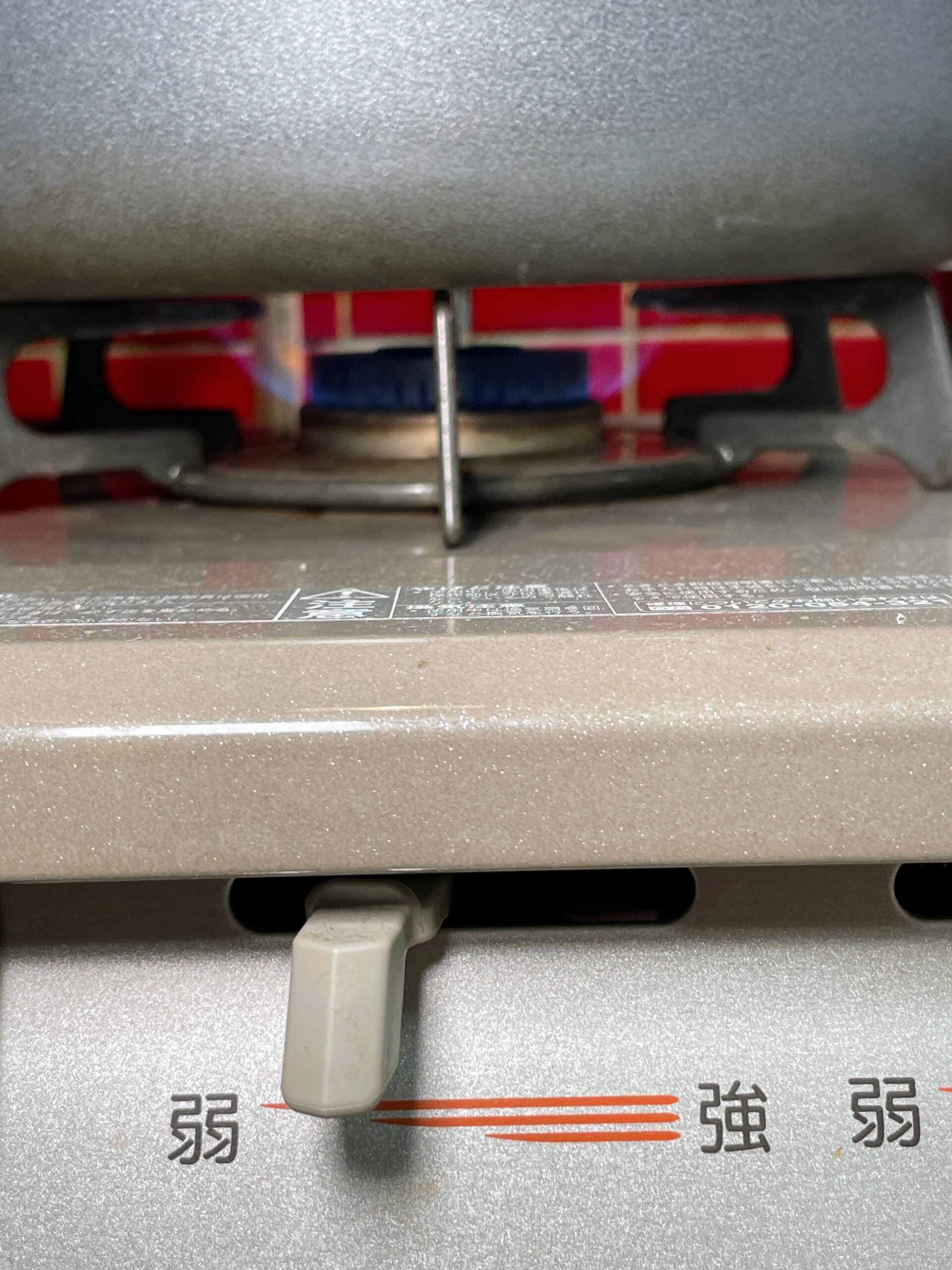 - 焼いている時の火加減はこれぐらいです。私はしっかり火を入れたほうが美味しいと思います。
