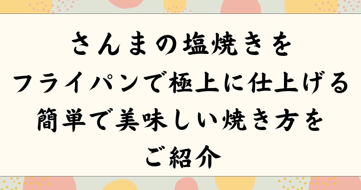 フライパンで失敗しないさんまの塩焼きの作り方を丁寧に解説します。