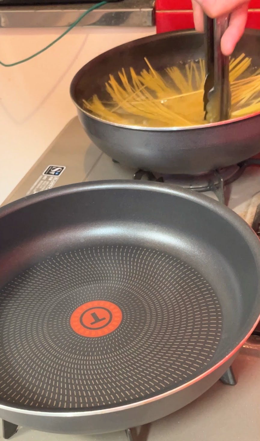 今回のパスタを作るのにティファールのフライパンを2つ使って作っています。