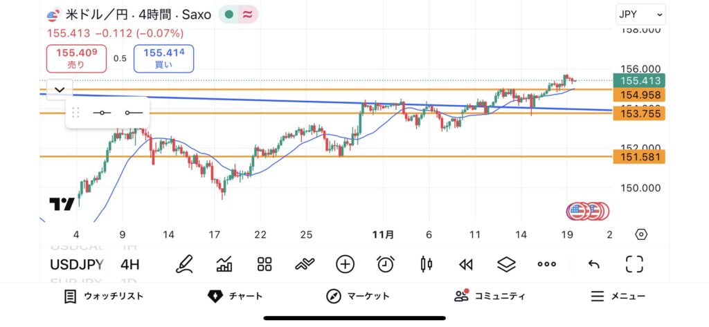 TradingViewはPCで引いたラインがスマホにそのまま反映されるという当たり前のようで当たり前ではない便利さが、忙しい兼業トレーダーのストレスを大きく減らしてくれます。